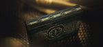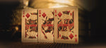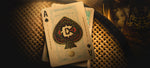 Faces obsessively rich in custom detail with metallic gold ink and vintage cigar inspired artistry throughout. With fully custom courts and flourishing aces to match, all housed in a luxurious soft-touch box and sealed with a vintage cigar warranty seal of its very own. Glistening with fine gold foil, embossing, and a traditional cigar box style branding strip running all the way around, they're one of the most detailed and authentic homages to Cuban cigars in the playing card world.