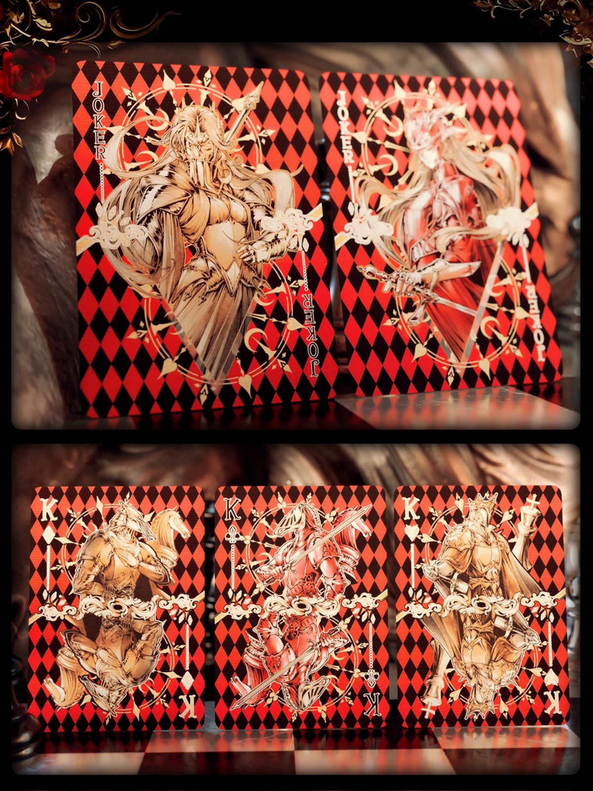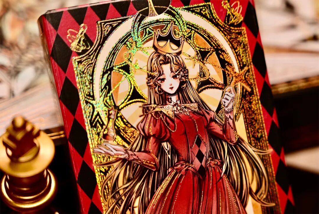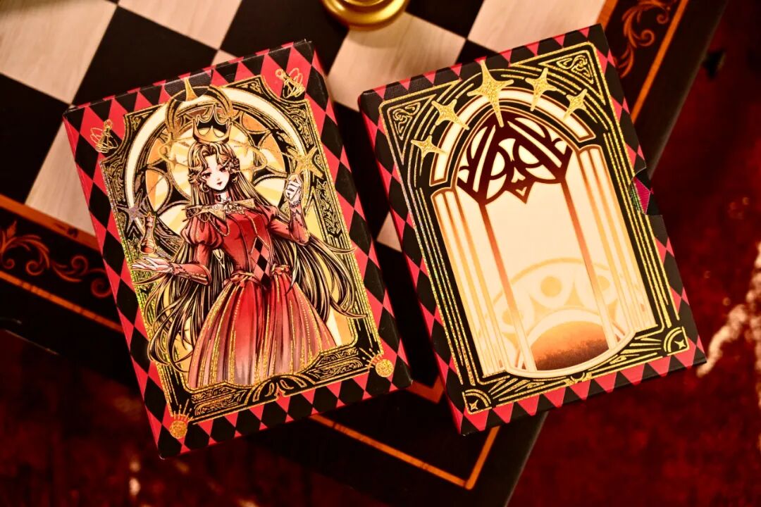 CHESS deck series is set in the 17th-century Baroque period of the Holy Roman Empire, creating a world view of a mirror-interwoven twin royal courts. The White Court is modeled after the Prague Crystal Palace, featuring Rococo-style gilded decorations and colorful glass domes; the black court is inspired by the Bratislava Fortress, presenting a dual image of dark red velvet curtains and bronze relief structures in the Gothic style. The two female chess players respectively control the two power systems of light and chaos, projecting a dual metaphor of royal power struggles and theological games in the chessboard confrontation.