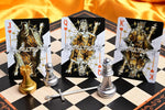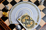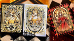 CHESS deck series is set in the 17th-century Baroque period of the Holy Roman Empire, creating a world view of a mirror-interwoven twin royal courts. The White Court is modeled after the Prague Crystal Palace, featuring Rococo-style gilded decorations and colorful glass domes; the black court is inspired by the Bratislava Fortress, presenting a dual image of dark red velvet curtains and bronze relief structures in the Gothic style. The two female chess players respectively control the two power systems of light and chaos, projecting a dual metaphor of royal power struggles and theological games in the chessboard confrontation.