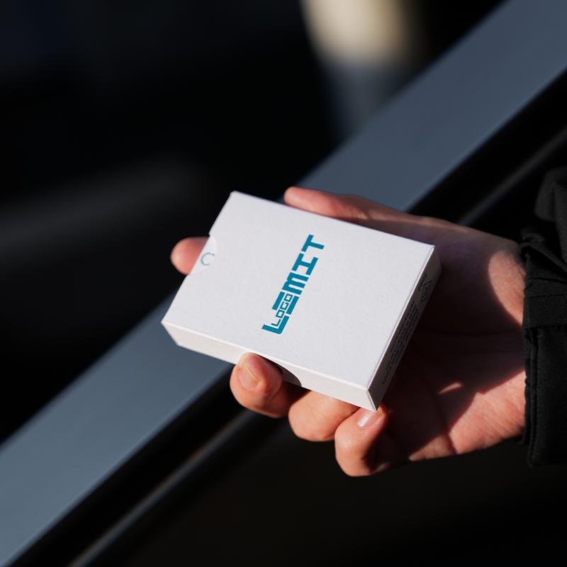 The design originates from the classic white-back Logo layout; the faces introduce corner indices, while the backs replace the central element with suit symbols, leaving orientation undefined and open to the player’s interpretation.