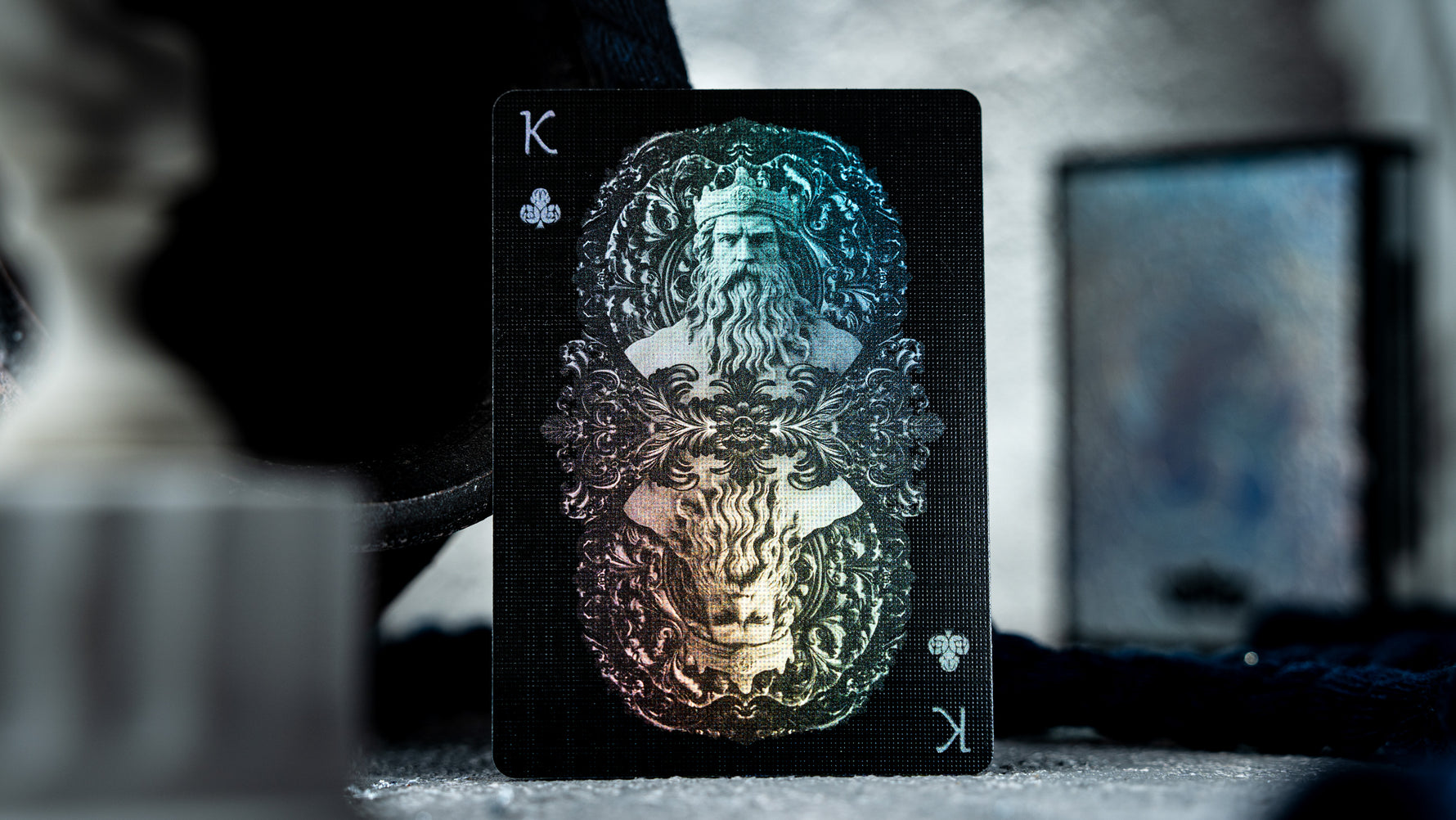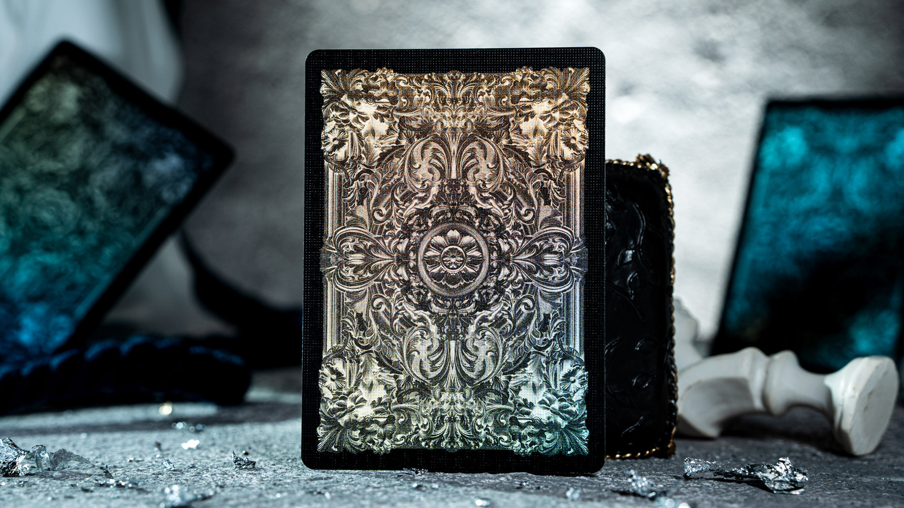The silver Holo edging, harmonizing with the overall color scheme, shimmers like flowing light,transforming this deck into an enduring work of art.