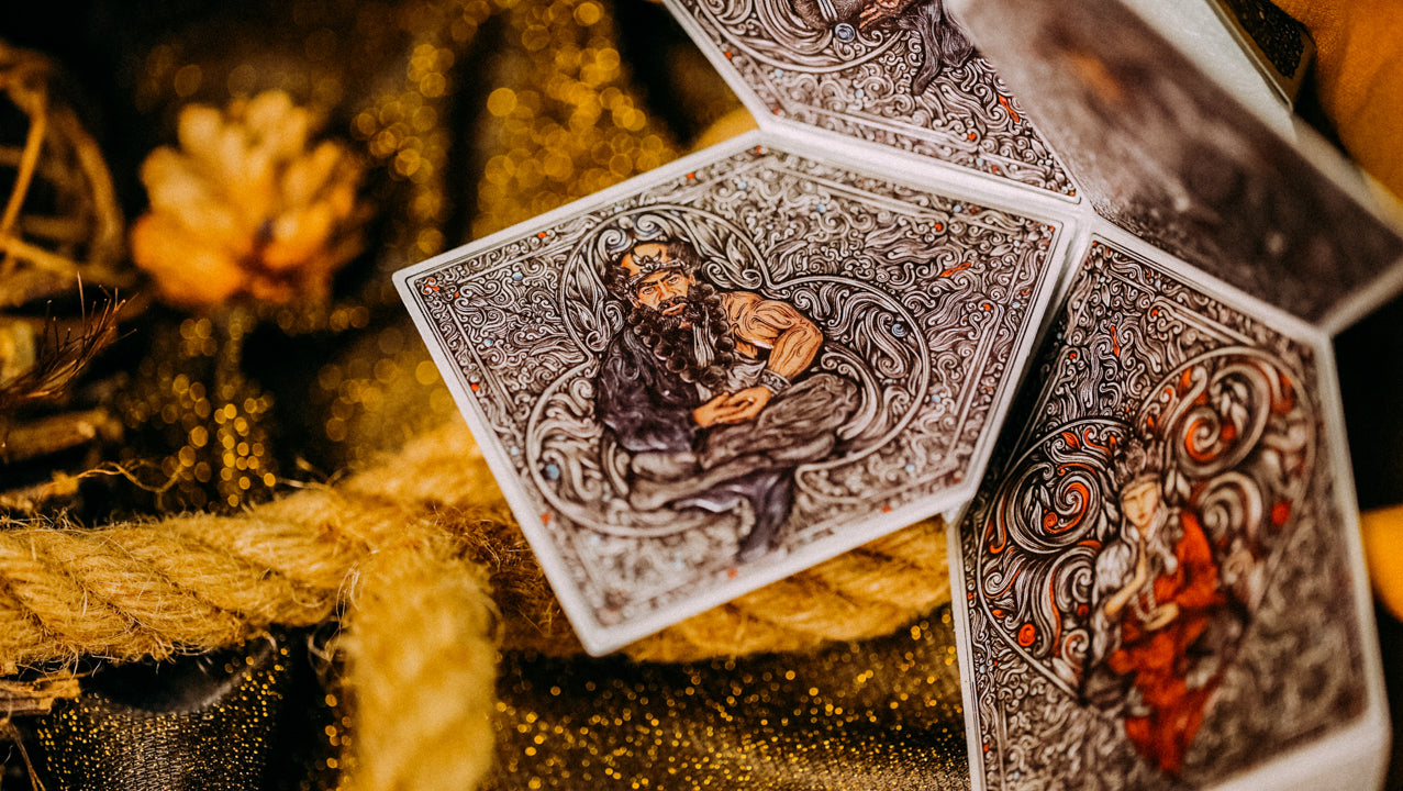 The cards inside are the premium edition, featuring the POP-out tuck case, HOLO foil and gilded edges. We've created a luxurious wooden collector's box to house and showcase these two decks of cards.
