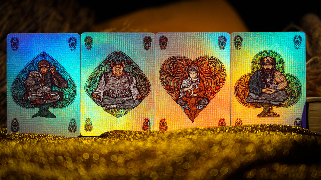 In addition to the Monkey King, there are a total of four main characters from the "Journey to the West." Based on this, we've modified the design of the ACE cards, tuck case, and card backs to represent the entire main character group. With the same luxurious embossing and exquisite illustrations, the playing cards exude a unique charm.