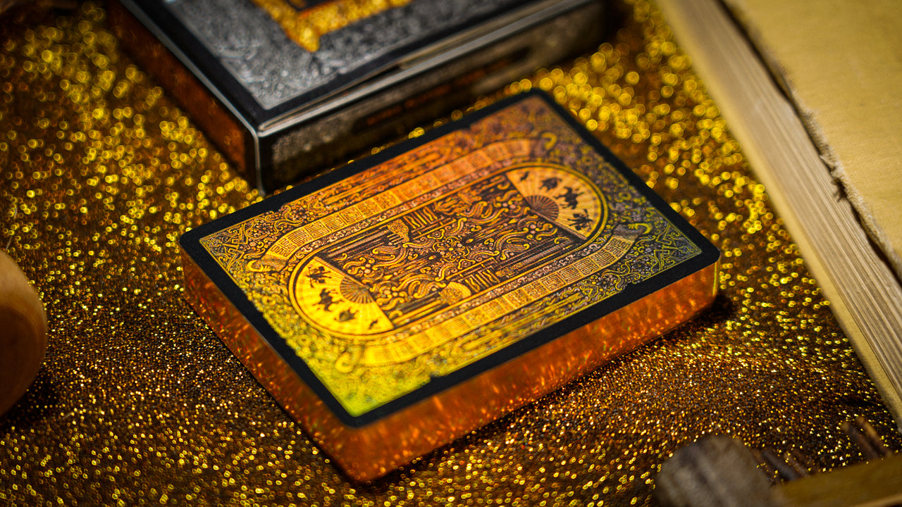 Here, the design takes on a more dazzling form with a glistening Embossed Metal brand. The Embossed Metal brand is intricately designed, representing the collector's positioning and the owner's prestige. It features laser-engraved numbering, matching the numbering inside the collector's box for both decks of cards, further enhancing their collectible value.