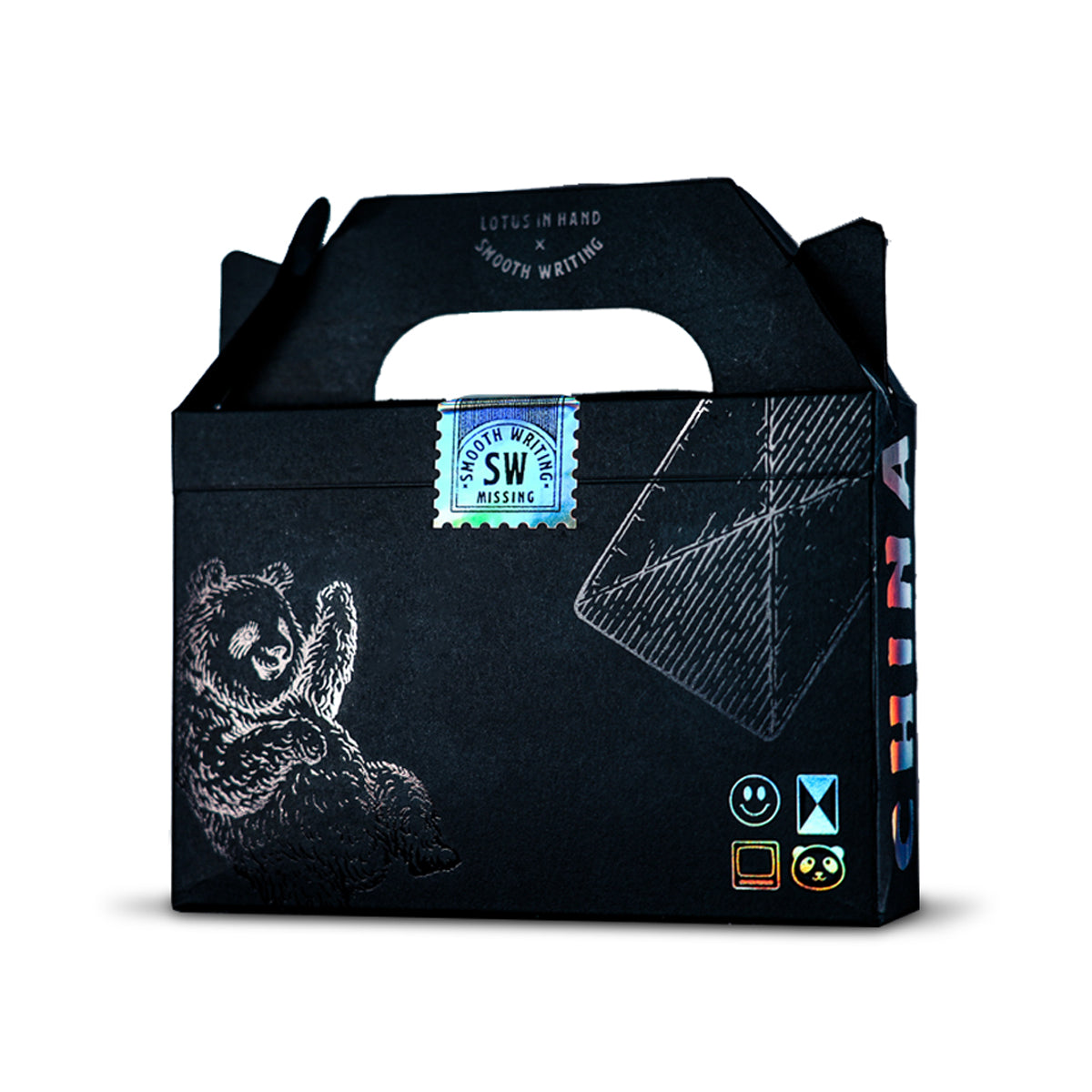Housed in a black matte box that showcases key design elements from the decks inside, such as the television and panda motifs, accented with holographic foil and a custom seal.